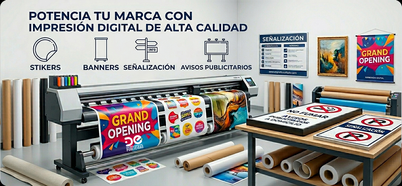 Servicio especial de impresión en diferentes materiales especiales como: banner, stikers, adhesivos, imanes, elaboaración de señalización y señaletica, habladores, menús, cartas para restaurantes, retablos y exhibidores